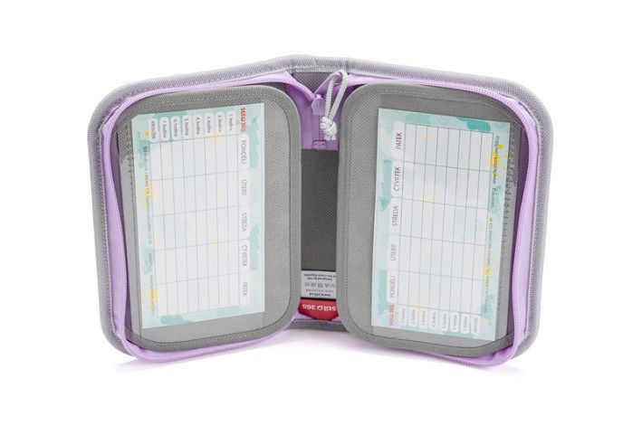 Jednopatrové penály mají velkou kapacitu k umístění psacích potřeb. 23 pevných gumiček různých velikostí k pohodlnému uložení větších pastelek nebo psacího pera, pravítka, ořezávátka a gumy. Vnitřní dvě chlopně mají na vnější straně průhlednou kapsičku na rozvrh či jiné malé dokumenty. Na vnitřní straně je kapsička na drobnosti, uzavíratelná patentem. Dokonale barevně sladěný design s aktovkou či batohem je samozřejmostí.