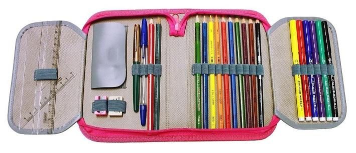 Penál se dvěma klopami EMIPO má celkem 23 pruženkových poutek pro různé druhy psacích a kreslících potřeb a praktickou kapsičkou na drobné věci. Součástí jsou i dva papírové rozvrhy hodin. Penál se jednoduše otevírá zipem a po otevření umožňuje snadný přístup k celému obsahu. Školní penály jsou neodmyslitelným doplňkem školních aktovek a batohů.