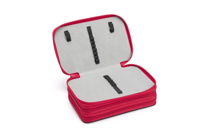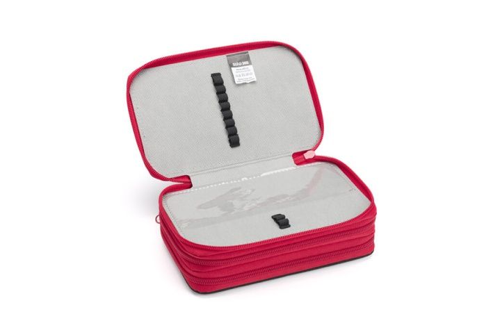 Třípatrové penály pojmou nejvíce psacích a školních potřeb. První patro obsahuje 8 gumiček na pastelky, 2 gumičky na tužky a jednu větší na pero, gumičky ořezávátko i gumu a malou uzavíratelnou kapsičku na drobnosti. Ve druhém patře je umístěna průhledná kapsička na rozvrh a 9 pevných gumiček na psací potřeby různých velikostí. Třetí část penálu nabízí navíc ještě dalších 15 gumiček na tužky a 2 malé gumičky na např. bombičky do pera. Školní penál třípatrový, prázdný, o rozměru 190 x 110 x 60 mm. Dokonale barevně sladěný design s aktovkou či batohem je samozřejmostí.