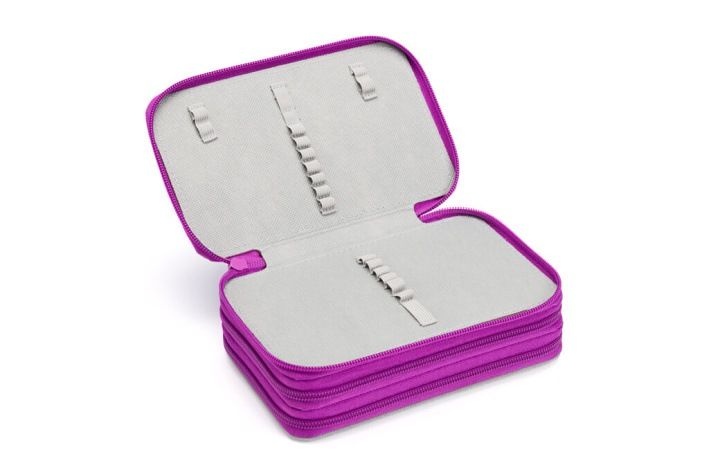 Třípatrové penály pojmou nejvíce psacích a školních potřeb. První patro obsahuje 8 gumiček na pastelky, 2 gumičky na tužky a jednu větší na pero, gumičky ořezávátko i gumu a malou uzavíratelnou kapsičku na drobnosti. Ve druhém patře je umístěna průhledná kapsička na rozvrh a 9 pevných gumiček na psací potřeby různých velikostí. Třetí část penálu nabízí navíc ještě dalších 15 gumiček na tužky a 2 malé gumičky na např. bombičky do pera. Školní penál třípatrový, prázdný, o rozměru 190 x 110 x 60 mm. Dokonale barevně sladěný design s aktovkou či batohem je samozřejmostí.