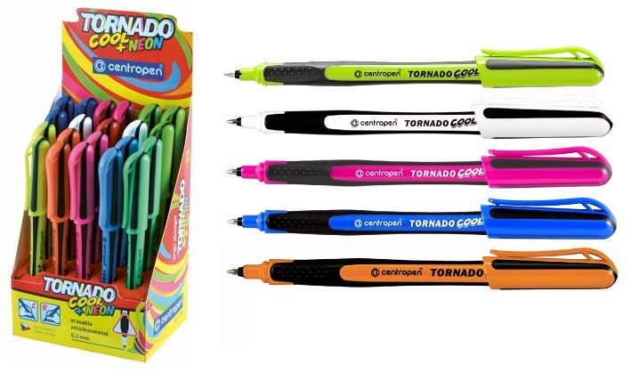 TORNÁDO nové generace - atraktivní desing v kombinaci dvou materiálů. Měkké gumové ERGO držení s masážními body garantuje zdravé psaní bez únavy. Vhodné pro leváky, praváky i dysgrafiky. Píše lehce, bez tlačení - doporučeno pro první dětské psaní, jedná se o vhodnou náhradu plnících per. Velmi dlouhá a tenká stopa písma, která se na kvalitním papíře nerozpíjí ani nepropíjí. Zcela nový, zdravotně nezávadný, rychleschnoucí, zmizíkovatelný, sytě modrý inkoust. Prodloužená úpisnost. Šíře psací stopy 0,3 mm. Cena za 1 kus. AKCE objednejte 20 kusů a 1 kus navíc dostanete zdarma.