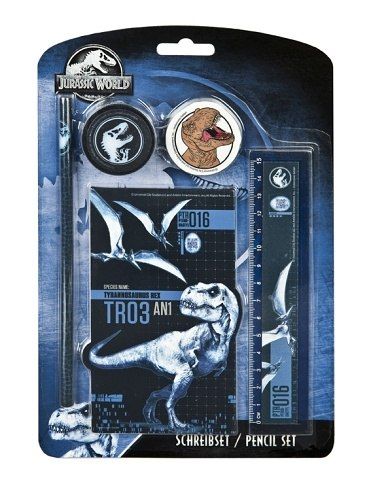 Školní sada Jurksý svět – 5 ks obsahuje tužku, ořezávátko, gumu, pravítko a notýsek.