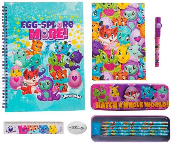 Školní sada Hatchimals 8 dílná obsahuje – blok, samolepky, gumu,