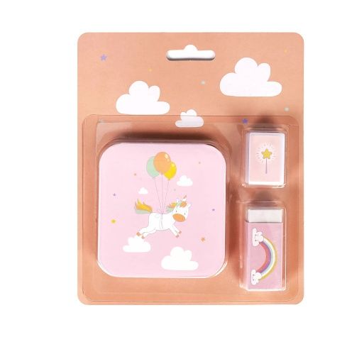 Vybavte svého malého školáka školní sadou, ve které najde vše potřebné - lepítko, ořezávátko a gumu.