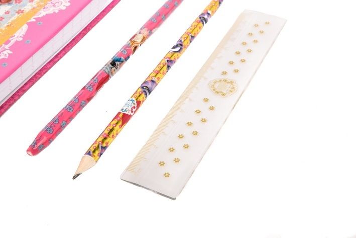 Školní sada Rita‚s Wonderland v ozdobné krabičce. Sada obsahuje diář, pravítko, 1× tužka, 1×propiska.