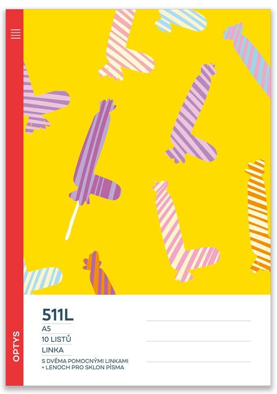 Představujeme novinku, kterou jinde nenajdete. Aktualizované sešity OPTYS jsou zas o kus lepší! Šrafování na obalu napovídá, že pevnou součástí je lenoch, který se už nikdy neztratí. Najdete ho na obou stranách sešitu. Stačí si jím podložit danou stránku. Vše je tak rychle připraveno ke psaní a školáček snadno může dodržovat sklon písma.