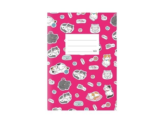 Školní sešit s linkou ve formátu A5, v sytě růžové barvě, s motivy koček, v originálních deskách s matným laminem a lokálním UV lakem. Stránky jsou bez okrajů. Typ: 523 Formát: A5 Motiv: kočky Barva: sytě růžová Šířka řádku: 12 mm Počet listů: 20 s linkou Gramáž listů papíru: 80 g Desky: matný křídový papír 300 g Uvedená cena je za 1 ks. Víte, co znamená číselné označení na sešitech?