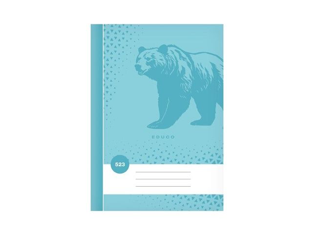 Školní linkovaný sešit ve formátu A5, ve tyrkysové barvě, s motivem medvěda, v deskách z křídového papíru. Stránky jsou bez okrajů. Typ: 523 Motiv: medvěd Barva: tyrkysová Šířka řádku: 12 mm Počet listů: 20 s linkou Gramáž listů papíru: 60 g Desky: matný křídový papír 200 g Uvedená cena je za 1 ks. Víte, co znamená číselné označení na sešitech?