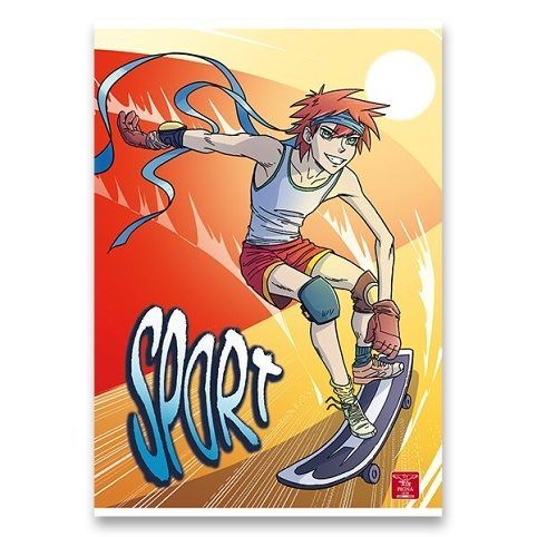 Školní sešit, šitý, linkovaný. Papír 80 g. Formát A4, 40 listů. Mix motivů.