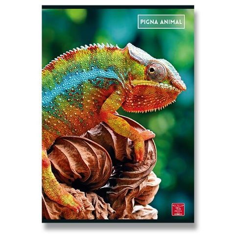 Školní sešit Pigna Animal. Formát sešitu je A4 se šitou vazbou. Obsahuje 40 linkovaných listů o gramáži 80 g. Mix motivů.
