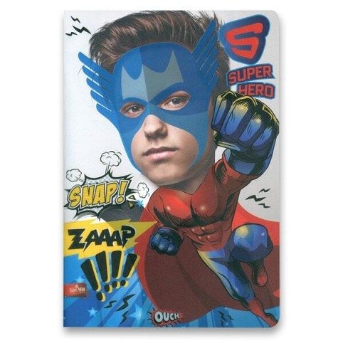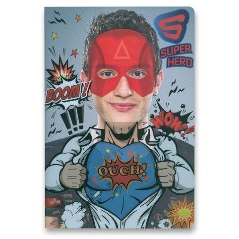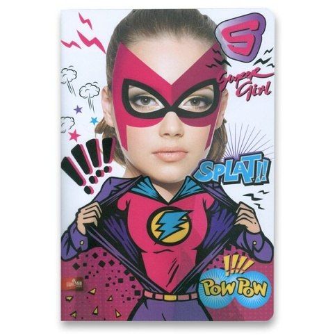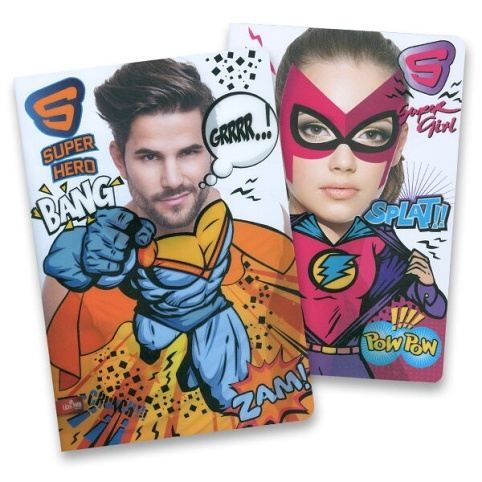 Školní sešit 444 s rozvrhem hodin, šitý, linkovaný. Originální dvouvrstvý obal s převlekem superhrdiny.Papír 80 g. Formát A4, 40 listů. Mix 6 motivů.