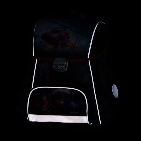 Aktovka: Školní aktovka z řady Premium je anatomicky tvarovaná a zajišťuje tak správné usazení na zádech. Vyztužená záda a vnitřní výztuha udržují stálý tvar batohu. Polstrování je z příjemného prodyšného materiálu, široké měkčené popruhy jsou navrženy tak, aby dokonale přilnuly a rovnoměrně zatížily ramena dítěte. Aktovka se skládá z jedné prostorné komory, kam se pohodlně vejdou všechny školní pomůcky pro děti v 1. a ve 2. třídě. Dno batohu je z pevného materiálu, chrání tím obsah před převržením a vysypáním. Zapínání je na bezpečnostní kovovou přezku s reflexní odrazkou. Přední kapsička je určena na svačinu, nechybí řada reflexních prvků, díky kterým je aktovka viditelnější. Délka zádového panelu: 33 cm. Objem: 27 l. Nosnost: 8 kg. Sáček: Praktický sáček na cvičky nebo přezůvky do školy. Uzavírá se snadno stažením šňůrek. Penál: Jednopatrový školní penál se dvěma chlopněmi bez náplně. Gumová poutka k uchycení psacích potřeb. Na vnitřní chlopni je průhledná fólie na rozvrh hodin.