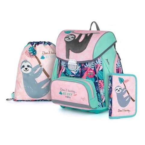 Aktovka: Školní aktovka z řady Premium s motivem lenochoda je anatomicky tvarovaná a zajišťuje tak správné usazení na zádech. Vyztužená záda a vnitřní výztuha udržují stálý tvar batohu. Polstrování je z příjemného prodyšného materiálu, široké měkčené popruhy jsou navrženy tak, aby dokonale přilnuly a rovnoměrně zatížily ramena dítěte. Aktovka se skládá z jedné prostorné komory, kam se pohodlně vejdou všechny školní pomůcky pro děti v 1. a ve 2. třídě. Dno batohu je z pevného materiálu, chrání tím obsah před převržením a vysypáním. Zapínání je na bezpečnostní přezku. Přední kapsička je určena na svačinu, nechybí řada reflexních prvků, díky kterým je aktovka viditelnější.