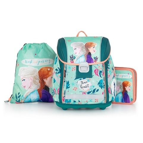 Batoh: Školní batoh řady Premium Light s motivem Frozen nabízí kvalitu, prostor na školní potřeby i odlehčenou konstrukci pro pohodlnější nošení. Díky odlehčenému materiálu váží batoh pouhých 900 g. Polstrování je z příjemného prodyšného materiálu, široké měkčené popruhy jsou navrženy tak, aby dokonale přilnuly a rovnoměrně zatížily ramena dítěte. Pro pohodlnější nošení je batoh dále vybaven přitažnými a hrudními popruhy. Batohy ocení především ti nejmladší školáci s výškou od 121 cm. Nechybí ani praktické reflexní prvky, vnitřní rozřaďovač i velké množství kapes. Batoh Premium Light bude tak perfektním parťákem nejen do školy.