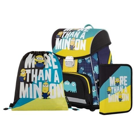 Aktovka: Školní aktovka z řady Premium s motivem Mimoňů je anatomicky tvarovaná a zajišťuje tak správné usazení na zádech. Vyztužená záda a vnitřní výztuha udržují stálý tvar batohu. Polstrování je z příjemného prodyšného materiálu, široké měkčené popruhy jsou navrženy tak, aby dokonale přilnuly a rovnoměrně zatížily ramena dítěte. Aktovka se skládá z jedné prostorné komory, kam se pohodlně vejdou všechny školní pomůcky pro děti v 1. a ve 2. třídě. Dno batohu je z pevného materiálu, chrání tím obsah před převržením a vysypáním. Zapínání je na bezpečnostní přezku. Přední kapsička je určena na svačinu, nechybí řada reflexních prvků, díky kterým je aktovka viditelnější.