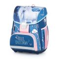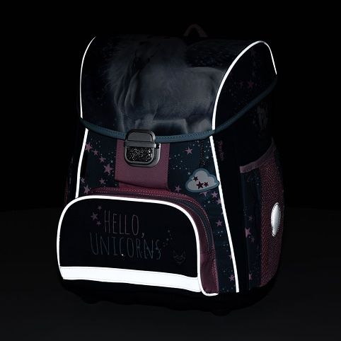 Aktovka: Školní aktovka z řady Premium s motivem jednorožce je anatomicky tvarovaná a zajišťuje tak správné usazení na zádech. Vyztužená záda a vnitřní výztuha udržují stálý tvar batohu. Polstrování je z příjemného prodyšného materiálu, široké měkčené popruhy jsou navrženy tak, aby dokonale přilnuly a rovnoměrně zatížily ramena dítěte. Aktovka se skládá z jedné prostorné komory, kam se pohodlně vejdou všechny školní pomůcky pro děti v 1. a ve 2. třídě. Dno batohu je z pevného materiálu, chrání tím obsah před převržením a vysypáním. Zapínání je na bezpečnostní přezku. Přední kapsička je určena na svačinu, nechybí řada reflexních prvků, díky kterým je aktovka viditelnější.