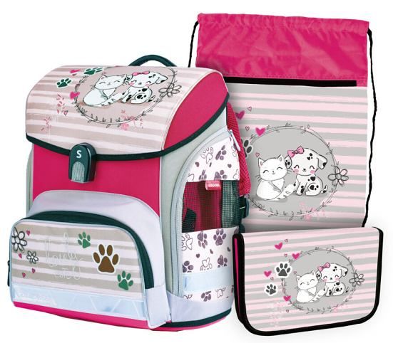 Školní set obsahuje: 1. Školní aktovka - kvalitní, ergonomicky tvarovaná odlehčená školní aktovka je vybavena reflexními prvky a anatomicky tvarovanými zády s pevnou konstrukcí. 2. Školní penál jednopatrový, prázdný s dvěma chlopněmi, o rozměru š. 19,5 x v. 3,5 x h. 13 cm. 3. Školní sáček na cvičky vhodný pro žáky 1. stupně ZŠ vyroben z pevného, kvalitního materiálu. Rozměr sáčku na přezůvky 44 x 32 cm. Školní aktovka pro prvňáčka (VHODNÁ PRO 1. 3. TŘÍDU). Kvalitní, ergonomicky tvarovaná odlehčená školní aktovka je vybavena reflexními prvky a anatomicky tvarovanými zády s pevnou konstrukcí. Školní aktovky Stil jsou ověřeny odborníky. PARAMETRY školní aktovky: Rozměr: výška 38 cm, šířka 32 cm, hloubka 22 cm. Hmotnost: 1 kg. Nosnost: 7 kg. Objem: 17 l. VLASTNOSTI školní aktovky. 3D ZÁDOVÝ SYSTÉM. Aktovka perfektně sedí na zádech. Anatomický zádový panel se přizpůsobí páteři dítěte a systém Air Flow a prodyšné polstrování umožní cirkulaci vzduchu a příjemné nošení. Hrudní pás s kvalitní přezkou zajistí dobré usazení aktovky na zádech dítěte. FIDLOCK: moderní patentové zapínání s magnetem pro snadné otevírání a zavírání aktovky jednou rukou. Velmi praktické a jednoduché řešení pro školáky - při přiložení víka se samo zapne. BEZPEČNOST: bezpečnostní prvky jsou velmi důležité, proto je aktovka vybavena reflexní pásky na všech stranách batohu, které zaručí lepší viditelnost a bezpečnost dítěte ve tmě. VNITŘNÍ USPOŘÁDÁNÍ: Hlavní vnitřní komora je rozdělená látkovou přepážkou pro lepší uložení pomůcek. V přední části komory je kapsička pro uložení drobností. Přední kapsa aktovky je určena pro svačinový box nebo penál.