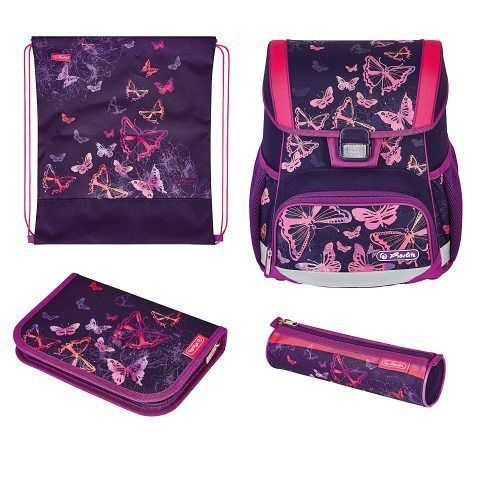 Školní set Herlitz Loop Motýlci, 4-dílný - batoh, penál, sáček, pouzdro
