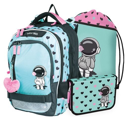 Školní set obsahuje: 1. Školní batoh junior – kvalitní, ergonomicky tvarovaný odlehčený školní batoh je vybaven reflexními prvky a anatomicky tvarovanými zády s pevnou konstrukcí. Batoh roste s dítětem 2. Školní penál jednopatrový, prázdný s dvěma chlopněmi, o rozměru š. 19,5 x v. 4,5 x h. 13,5 cm 3. Školní sáček na cvičky vhodný pro žáky 1. stupně ZŠ vyroben z pevného, kvalitního materiálu. Rozměr sáčku na přezůvky 44 x 32 cm.