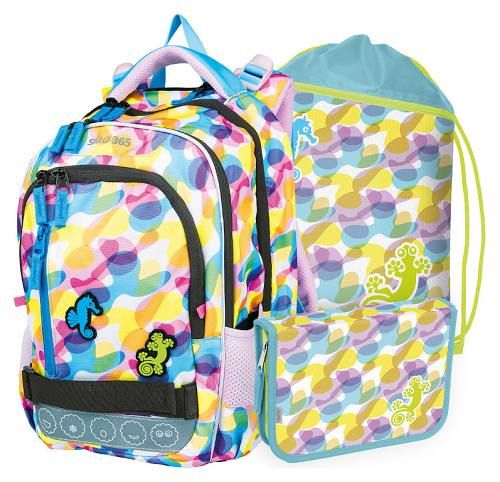 Školní set obsahuje: 1. Školní batoh junior – kvalitní, ergonomicky tvarovaný odlehčený školní batoh je vybaven reflexními prvky a anatomicky tvarovanými zády s pevnou konstrukcí. Batoh roste s dítětem 2. Školní penál jednopatrový, prázdný s dvěma chlopněmi, o rozměru š. 19,5 x v. 4,5 x h. 13,5 cm 3. Školní sáček na cvičky vhodný pro žáky 1. stupně ZŠ vyroben z pevného, kvalitního materiálu. Rozměr sáčku na přezůvky 44 x 32 cm.