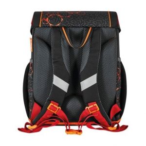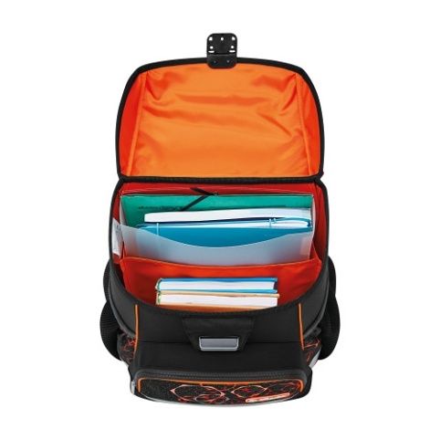 37x31x22cm, ergonomicky tvarované a prodyšné polstrování zad, nastavitelné ramenní popruhy, výškově nastavitelný hrudní pás, hlavní kapsa s prostorem pro knihy, boční kapsy s elastickými pásky, přední kapsa na zip, stabilní spodní deska, pohodlná rukojeť, zavírání Click lock, reflexní materiály Oralite, integrovaná odrazka v zámku. Hmotnost 950 g, objem 15 l. Výbava: penál 16 dílů, sáček na cvičky, kulaté pouzdro