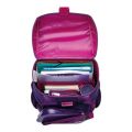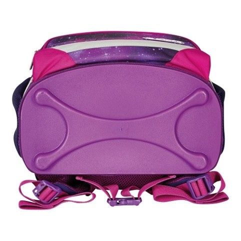 37x31x22cm, ergonomicky tvarované a prodyšné polstrování zad, nastavitelné ramenní popruhy, výškově nastavitelný hrudní pás, hlavní kapsa s prostorem pro knihy, boční kapsy s elastickými pásky, přední kapsa na zip, stabilní spodní deska, pohodlná rukojeť, zavírání Click lock, reflexní materiály Oralite, integrovaná odrazka v zámku. Hmotnost 950 g, objem 15 l. Výbava: penál 16 dílů, sáček na cvičky, kulaté pouzdro