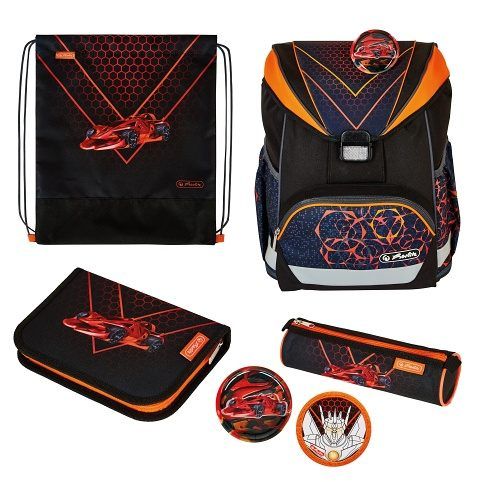 36x28x21 cm, anatomicky tvarovaná polstrovaná záda, široké nastavitelné ramenní popruhy, hrudní popruh, přední kapsa, dvě boční kapsy, reflexní pruhy, 2 odznáčky na suchý zip, hmotnost 650 g, Objem: 15 l. Výbava: penál 16 dílů, sáček na cvičky, kulaté pouzdro