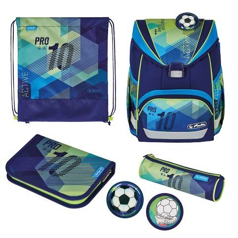 36x28x21 cm, anatomicky tvarovaná polstrovaná záda, široké nastavitelné ramenní popruhy, hrudní popruh, přední kapsa, dvě boční kapsy, reflexní pruhy, 2 odznáčky na suchý zip, hmotnost 650 g, Objem: 15 l. Výbava: penál 16 dílů, sáček na cvičky, kulaté pouzdro