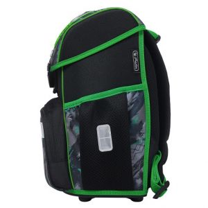 Školní batoh Loop - Džungle,37x31x22cm,erg.tvar.polst.zad,nast.ram.popruhy,hrud.popruh,hl.kapsa s prost.pro knihy,boč.kapsy s el.pásky,před.kapsa na zip, zavír.Click lock,refl.mater.,hm.950g,obj.16l,výbava:penál 16dílů,sáček na cv.,kul.pouzdro