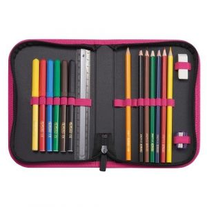 Výbava: penál 16 dílů, sáček na cvičky, kulaté pouzdro