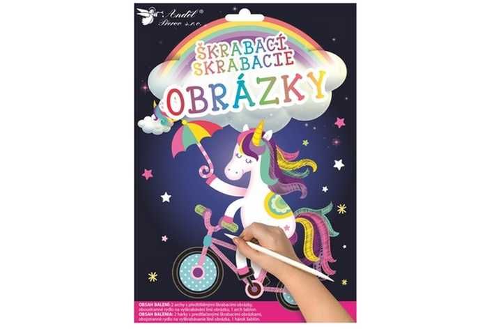 Škrabací obrázek 2 archy 16,5x21cm Jednorožec