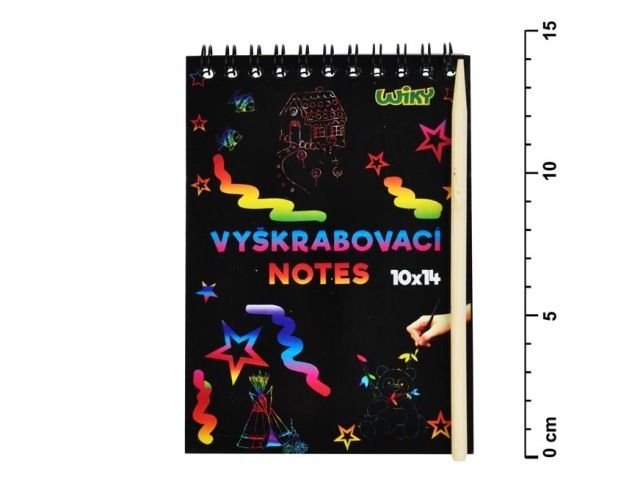 Vyškrabovací notes s perem - Dopřejte si chvilku odpočinku a kreativně se vydovádějte na vyškrabovacím notesu. Na jednotlivých listech můžete pomocí vyškrabovacího pera vytvářet různé pestrobarevné obrázky. Dítě si zlepší motoriku ruky a naučí se kreslit. NOTES OBSAHUJE: - 12 listů - 1 škrabátko VAROVÁNÍ: Nevhodné pro děti do 3 let. Obsah malých částí - hrozí nebezpečí udušení Uvedená cena je za 1 balení.