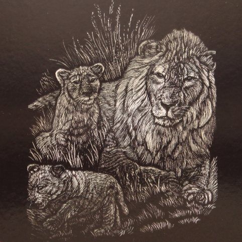 Škrábací obrázek A5 lev a lvíčata HOLOGRAPHIC