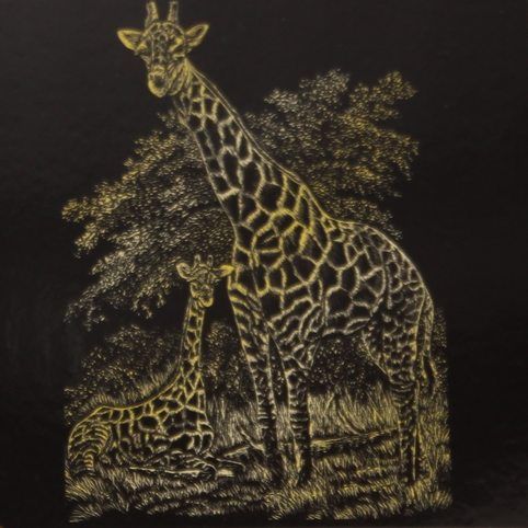 Škrábací obrázek A5 žirafa s mládětem GOLD