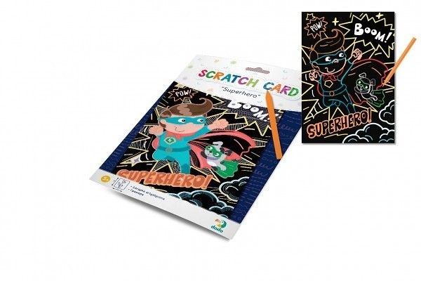 Škrabací obrázek barevný Superhrdina 21x29cm na kartě