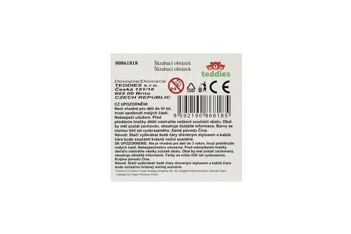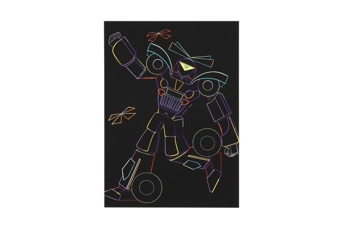 Škrabací obrázek, kde perem šeškrábete dle vlastní fantazie robota. Doškrabejte mu např. uniformu, atp. Dítě nakonec získá obrázek, kterým si může vyzdobit pokojíček, přičemž samo získá mnoho potřebných dovedností, jako je pozornost, trpělivost, opatrnost a přispěje k rozvoji tvořivého talentu a motoriky. Sada obsahuje 4 obrázky formátu A4.