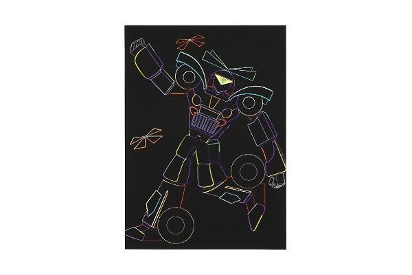 Škrabací obrázek, kde perem šeškrábete dle vlastní fantazie robota. Doškrabejte mu např. uniformu, atp. Dítě nakonec získá obrázek, kterým si může vyzdobit pokojíček, přičemž samo získá mnoho potřebných dovedností, jako je pozornost, trpělivost, opatrnost a přispěje k rozvoji tvořivého talentu a motoriky. Sada obsahuje 4 obrázky formátu A4.