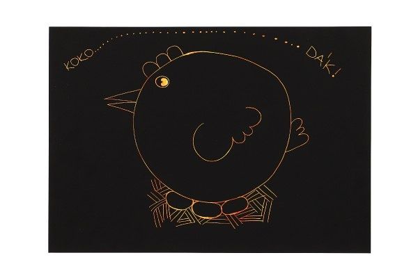 Po seškrábání linek předtištěného obrázku se objeví krásný rytinový obrázek. Sada obsahuje obrázek natištěný na černém kartonu, 1x prázdný arch, na který lze vyškrábat libovolné ornamenty a dřevěné pero.
