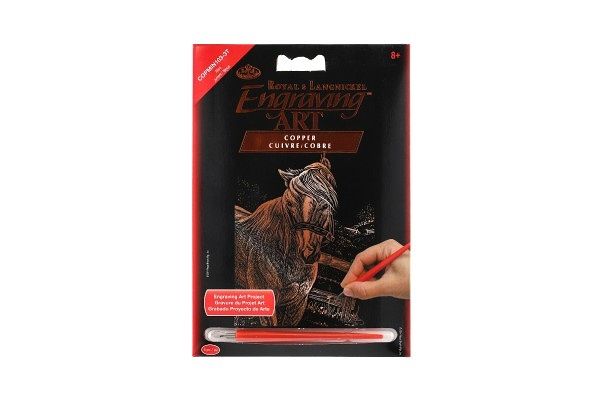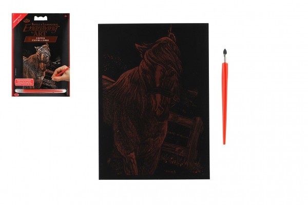 Škrabací obrázek měděný Kůň 12,5x18cm na kartě