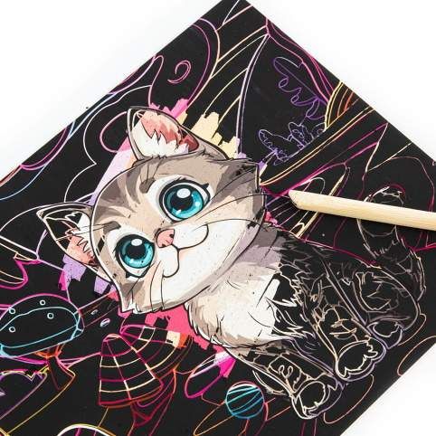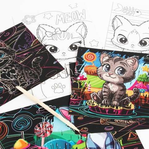 Škrábací obrázek + omalovánky Kočky