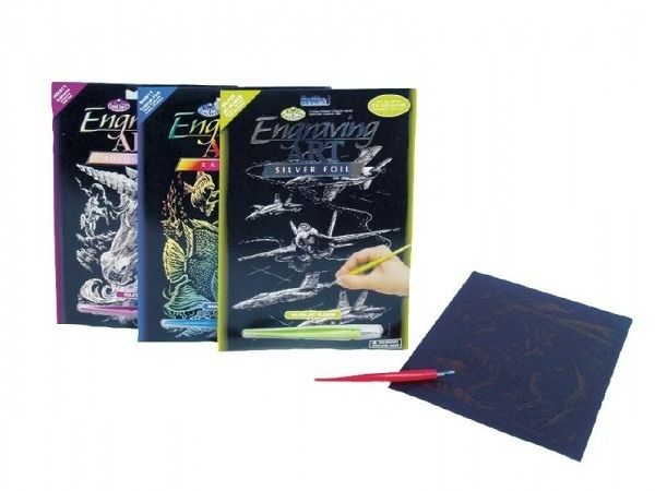 Sada obsahuje obrázek natištěný na černém kartonu, škrabací pero a vzorek na vyzkoušení. Po seškrábání linek předtištěného obrázku se Vám objeví krásný rytinový obrázek, který se pěkně leskne z různých úhlů pohledu. Velikost obrázku 25 x20 cm. Vhodné od 8 let.