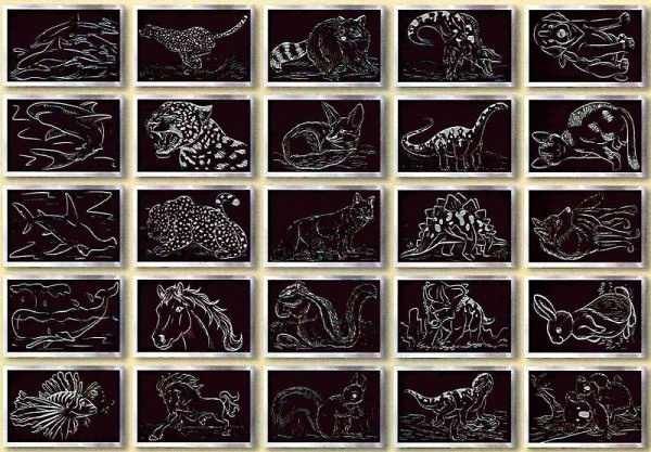 Po seškrábání linek předtištěného obrázku se Vám objeví krásný rytinový obrázek, který se pěkně leskne z různých úhlů pohledu. Vhodné od 6 let. Velikost obrázku 15 x 10 cm.