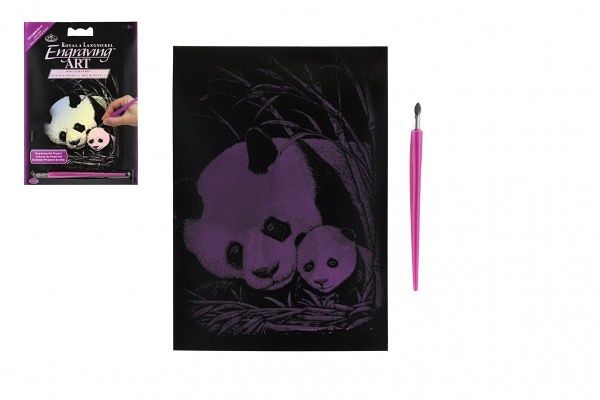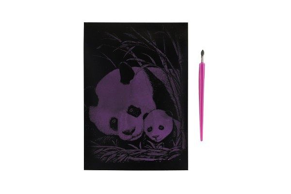 Škrabací obrázek stříbrný Pandy 12,5x18cm na kartě
