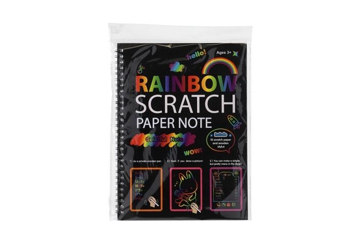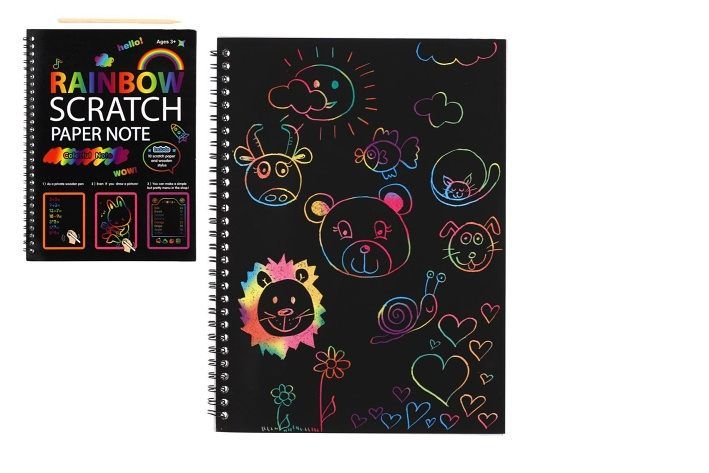 Kreativně se vydovádějte na vyškrabovacím notesu. Na jednotlivých listech můžete pomocí vyškrabovacího pera vytvářet různé pestrobarevné obrázky. Balení obsahuje notes 10 listů + vyškrabovací tyčinku.