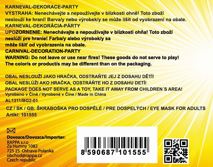Parádní škraboška v černé barvě, ideální na ples nebo večírek.