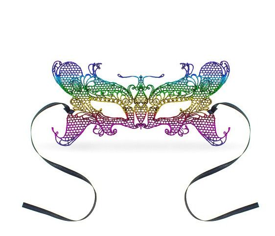 Duhová krajková škraboška určená jako skvělý doplněk kostýmů na ples, karnevalovou párty či halloween.