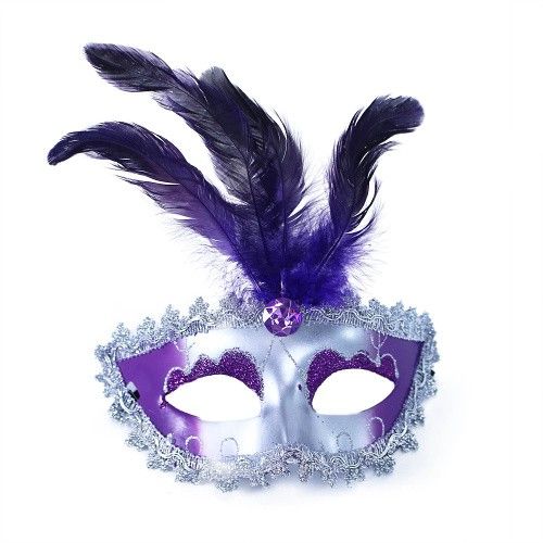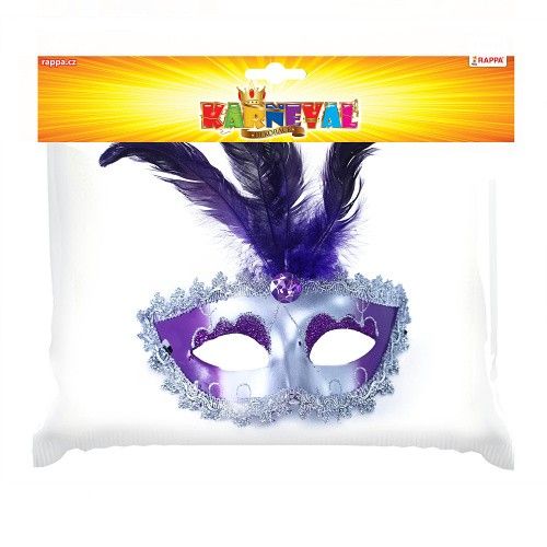 Škraboška fialovo-stříbrná s peřím