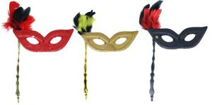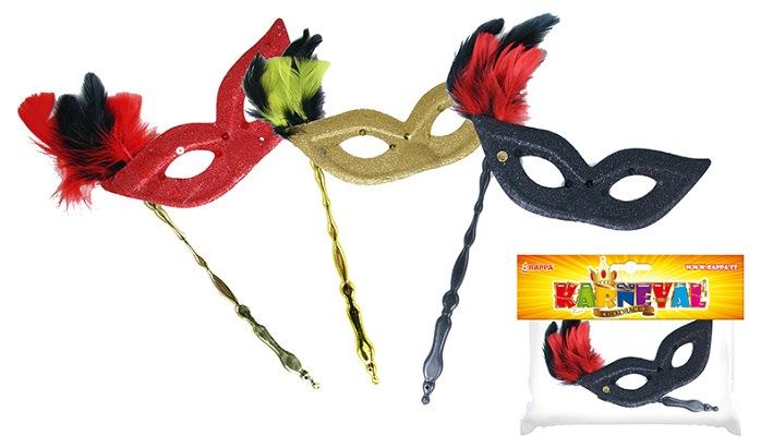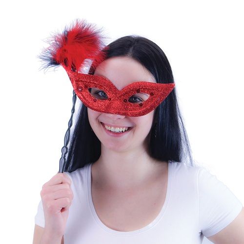 Elegantní škraboška se zlatým držátkem je zdobena hebkým peřím, oslnivými třpytkami a flitry. Staň se tajuplnou hvězdou karnevalového večírku díky této úchvatné škrabošce a ohrom tak všechny své přátele!
