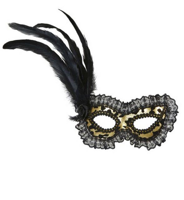 Škraboška zlatá s krajkou a peřím