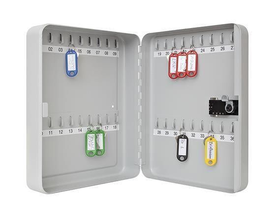 Vlastnosti: odolná; na 36 ks klíčů; uzamykatelná; na 3 místný číselný kód; pevné háčky s možností označení;